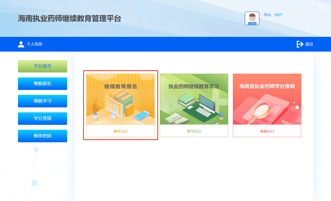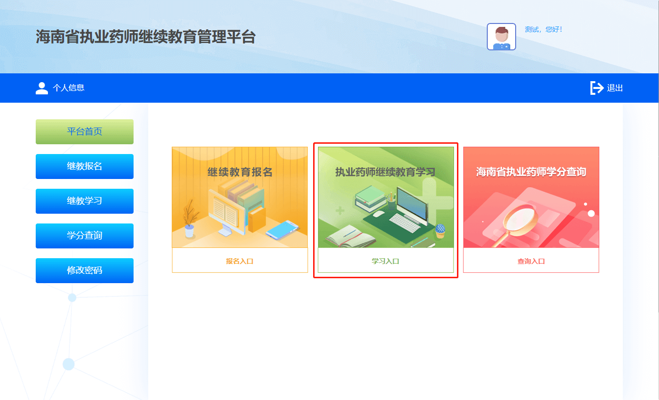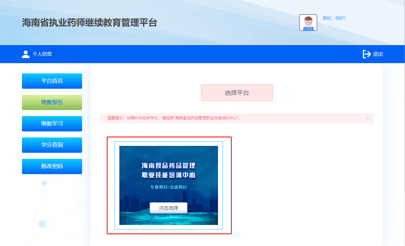 所有课程考试通过后,取得本年度学分。返回管理平台打印学分证明。