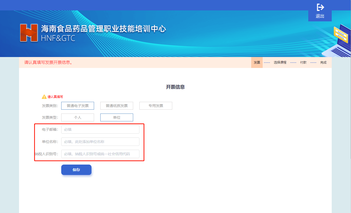 5、按需选择发票类别,填写完成后,点击保存按钮。