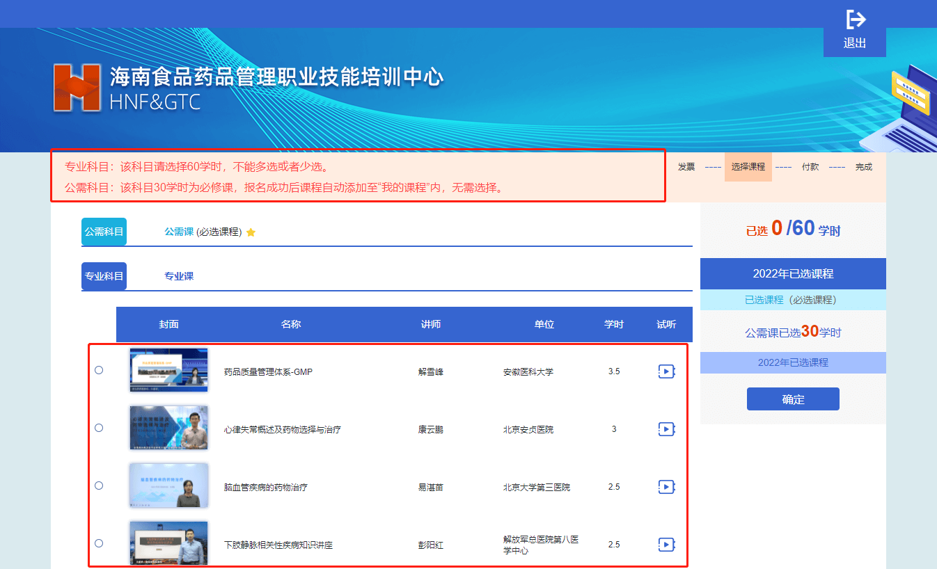6、按页面提示要求选择课程,点击确定按钮。