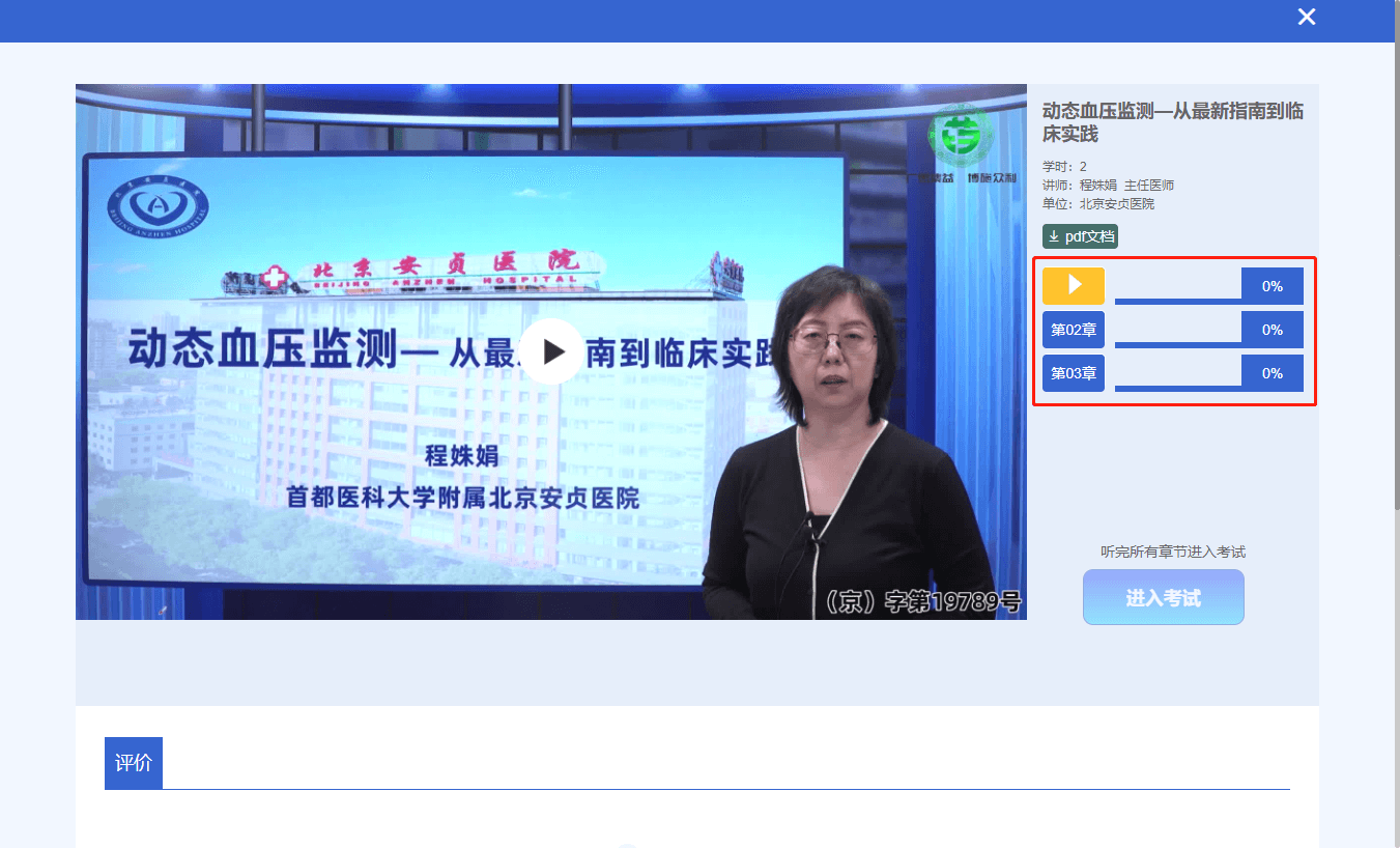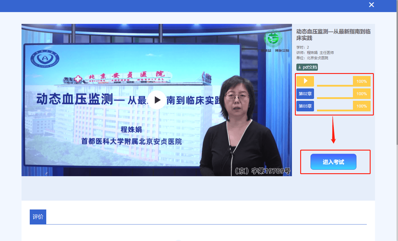 4、按顺序观看视频课程,学习进度为100%,考试入口开放。